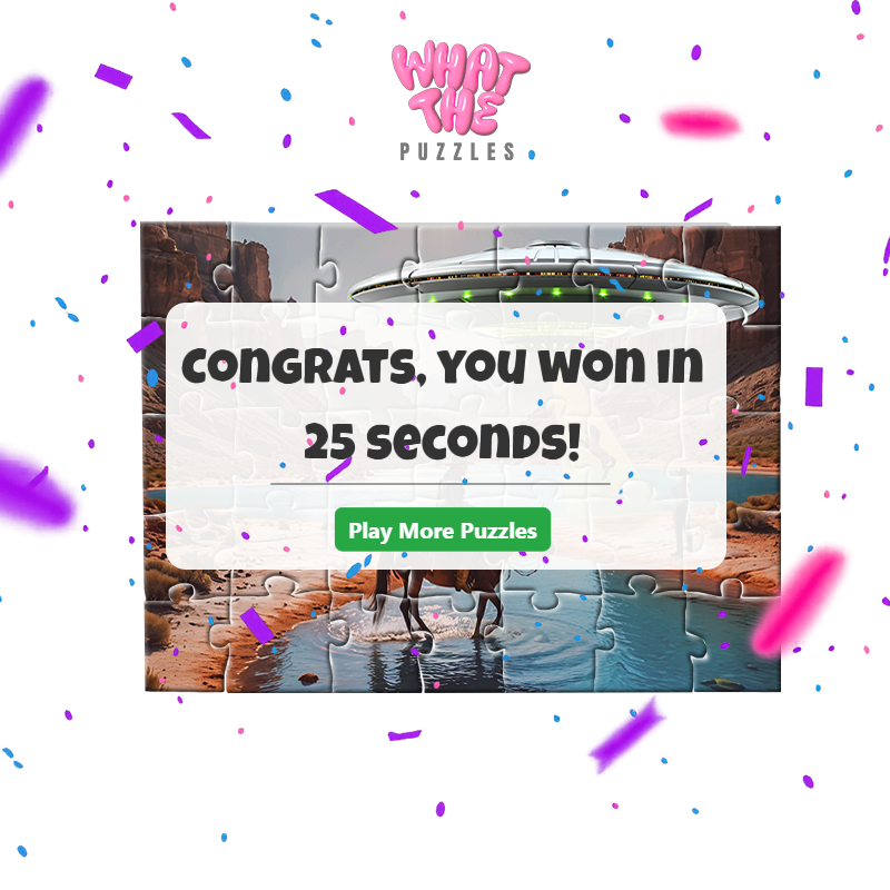 Unleash your inner Puzzle Master with this “Horsing Around” Jigsaw Puzzles by WTF Puzzles! This funny jigsaw puzzle features a hilariously bizarre scene with a couple of good ol’ cow boys… One of which might need a ride home! This challenging puzzles for adults allows you to choose between 9, 16, 30, 40 and 50 piece options! As you piece together the intricate details of hilariously funny puzzles, you'll be treated to an intergalactic jigsaw puzzle of an alien spaceship abducting a cowboy’s horse - this digital jigsaw puzzle is use to make each piece more confusing than the last. Whether you're a seasoned adult puzzler, a newcomer to the hobby or just looking for the perfect gag gift, this WTF Puzzles promises hours of entertainment and a satisfying sense of accomplishment upon completion.